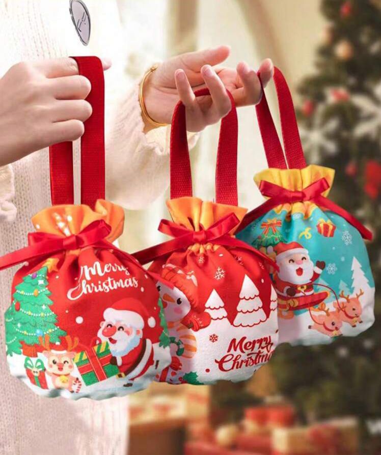 【 Wide Applications】: The multifunctional holiday gift pouch is suitable for storing candy, apple, chocolate, sweets, cookies, treats, Christmas cards and other small items