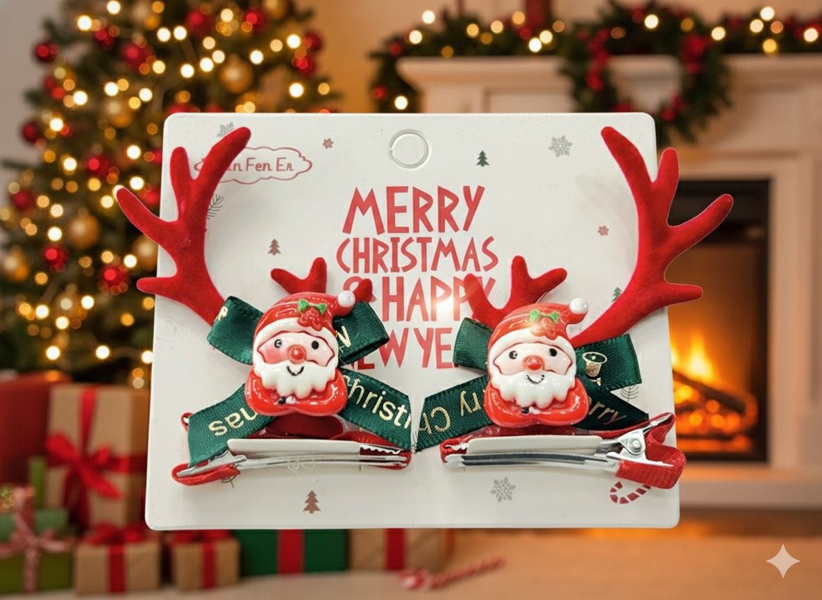 Christmas Reindeer Antler Hair Clips Pair