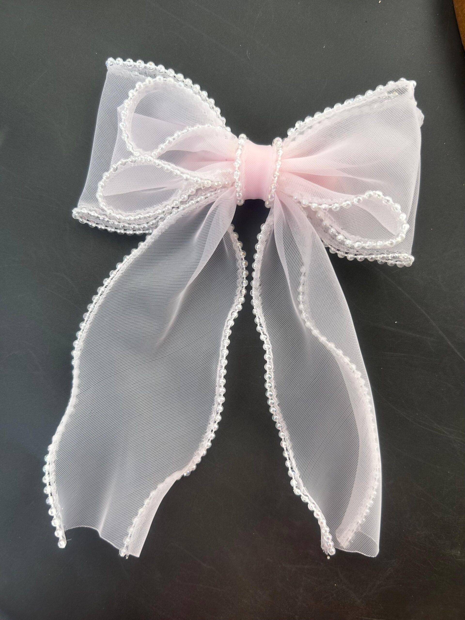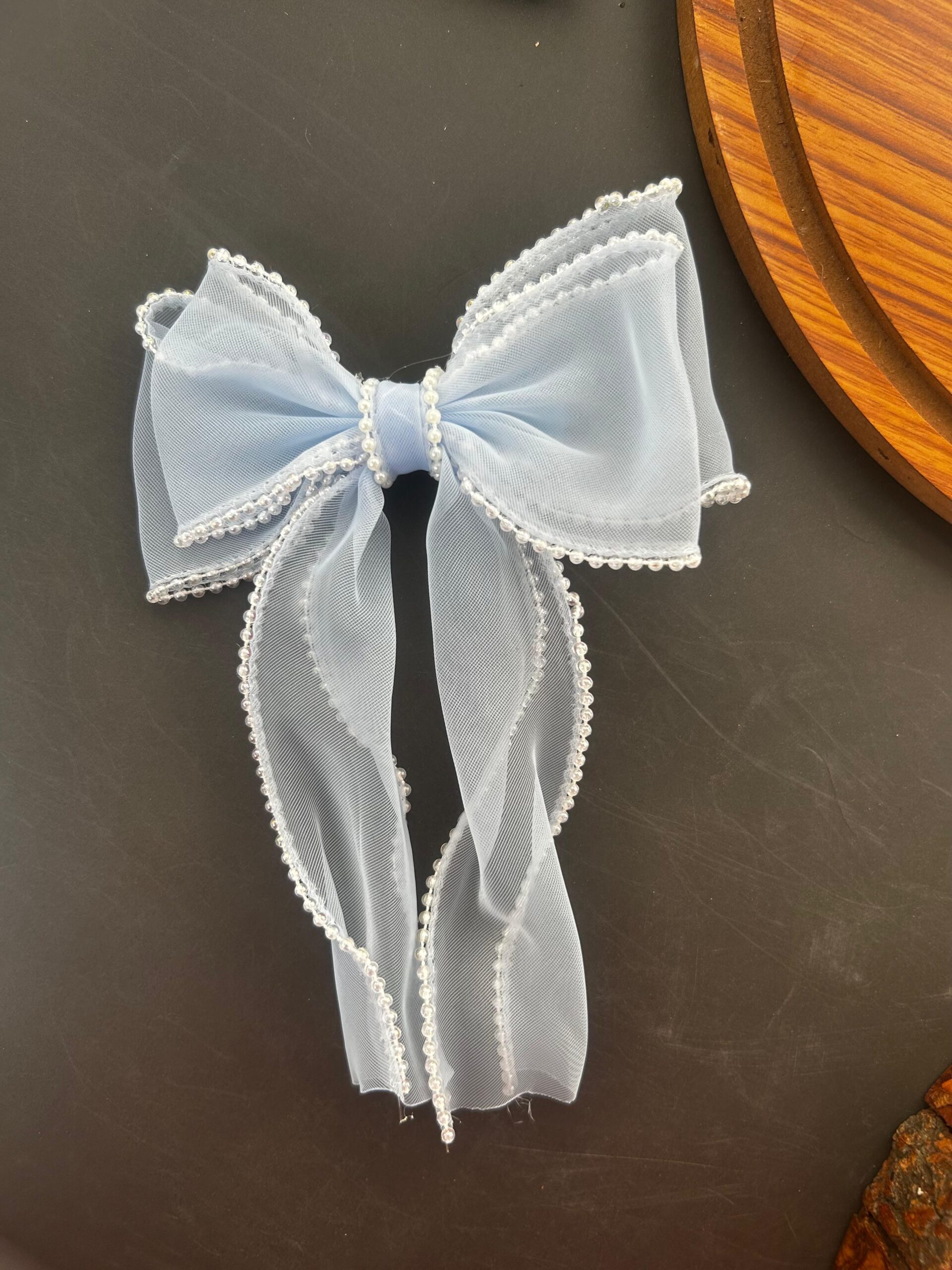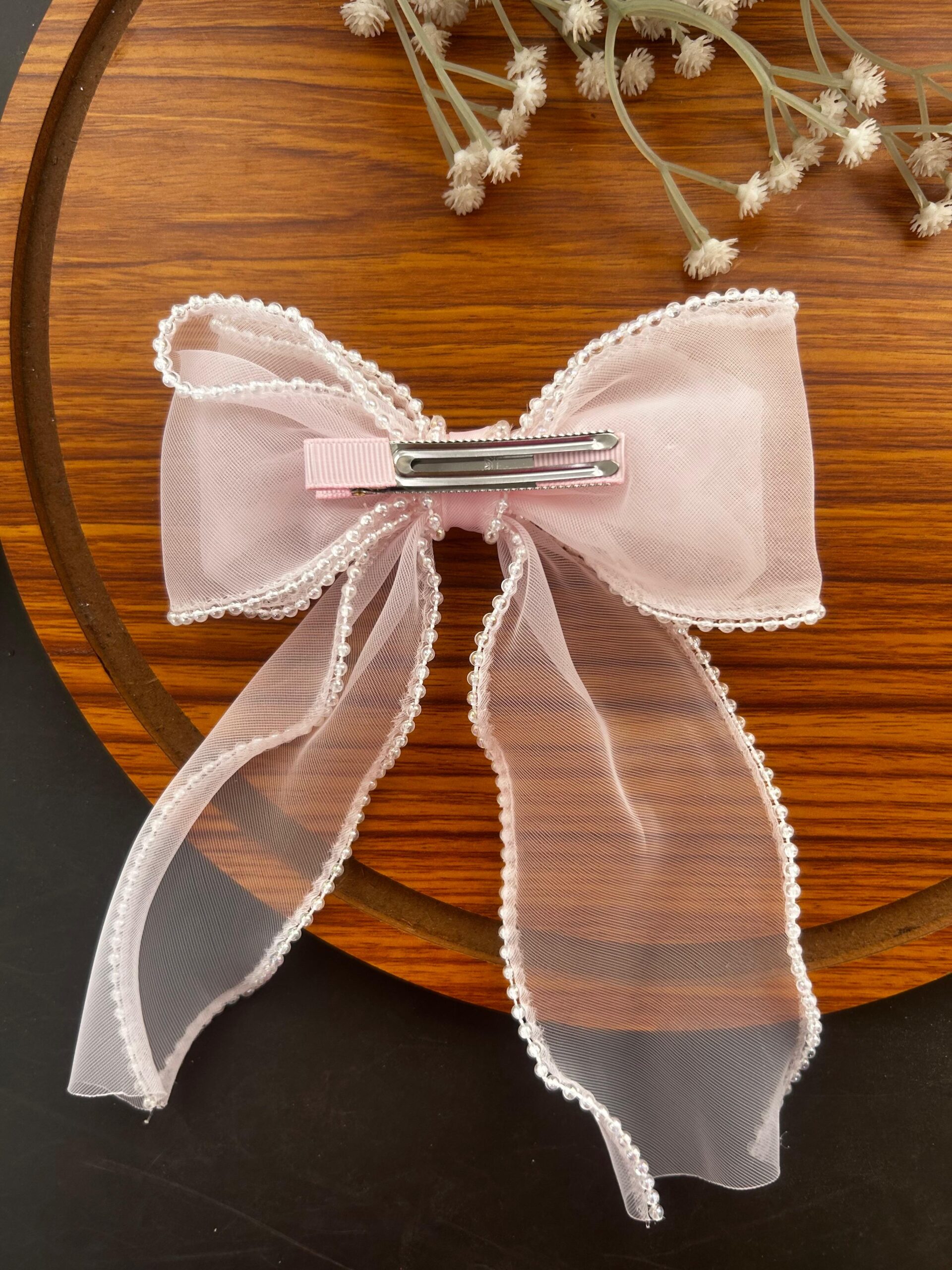 Pearl lining Organza Hair Bow Clip