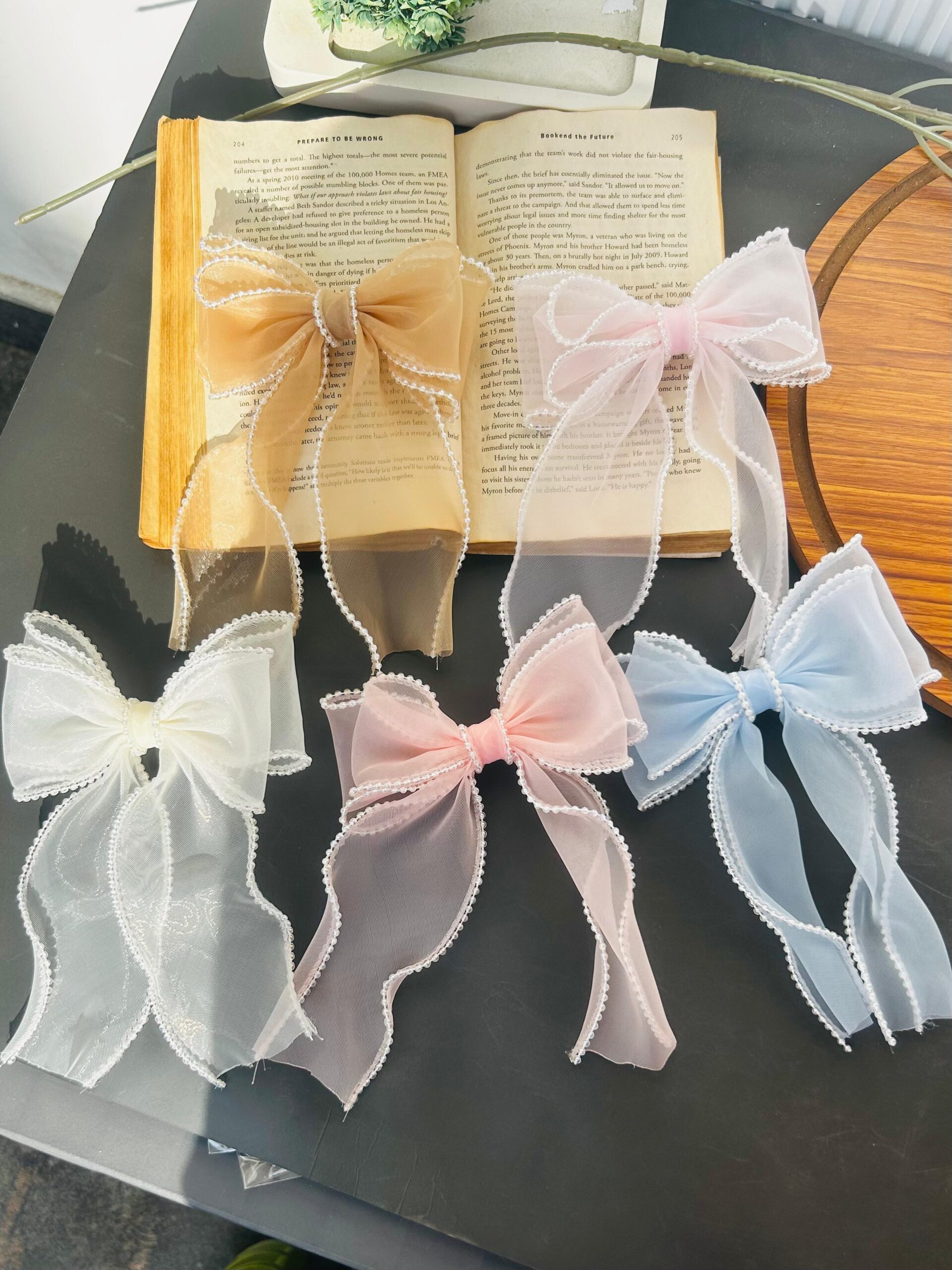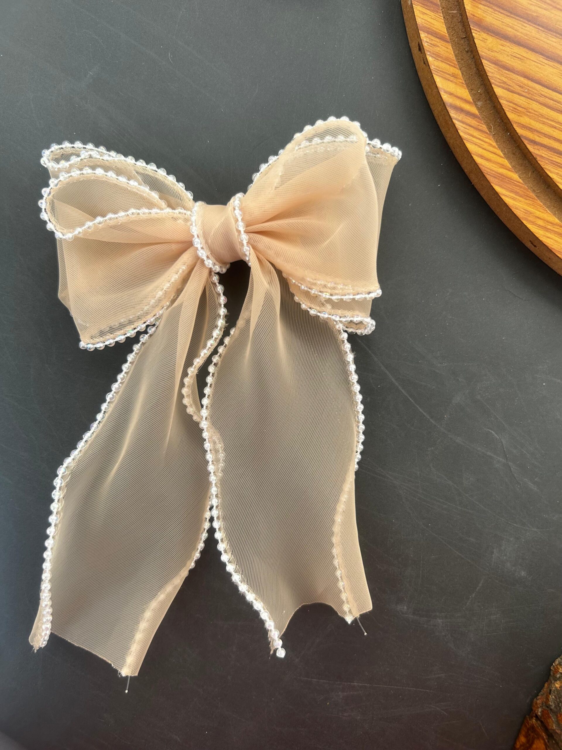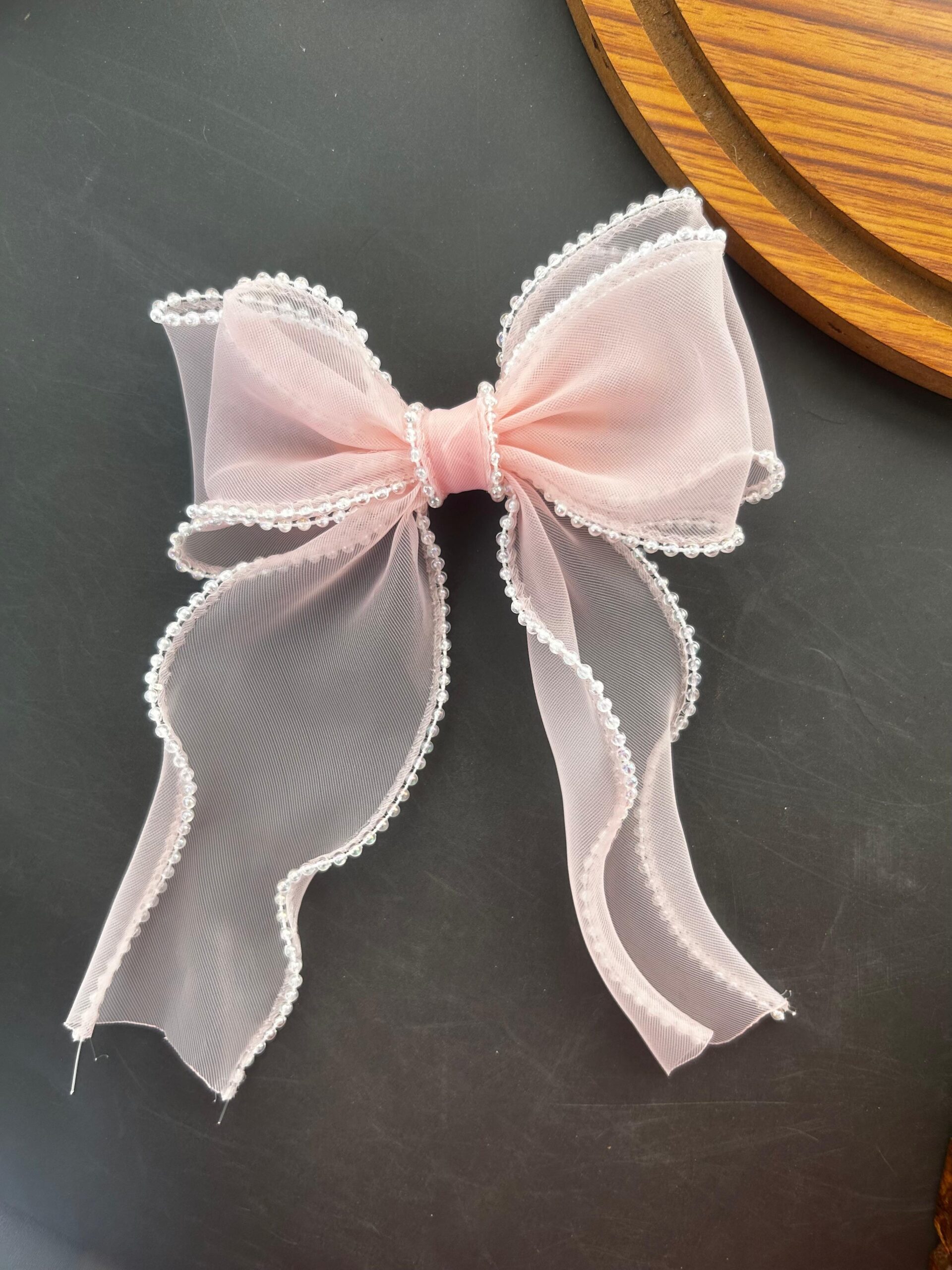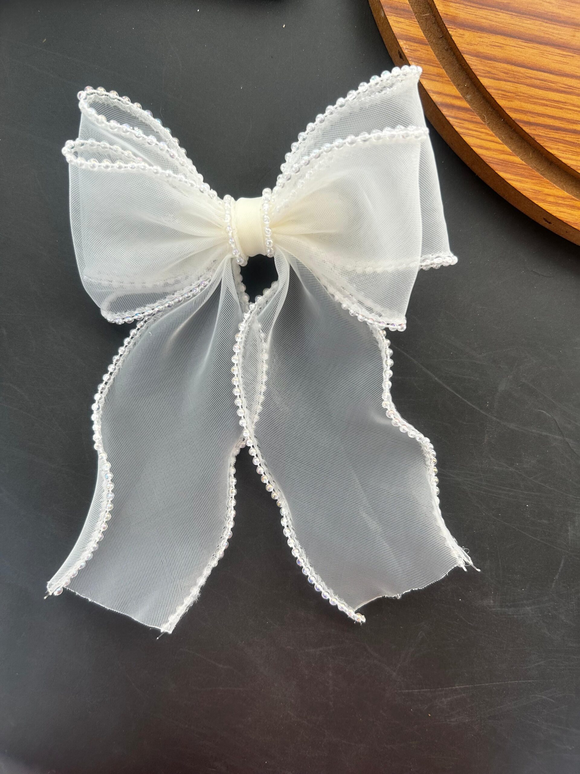 Pearl lining Organza Hair Bow Clip