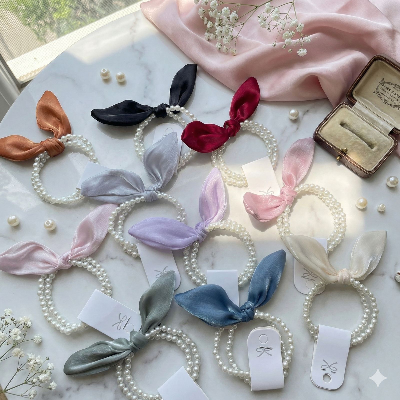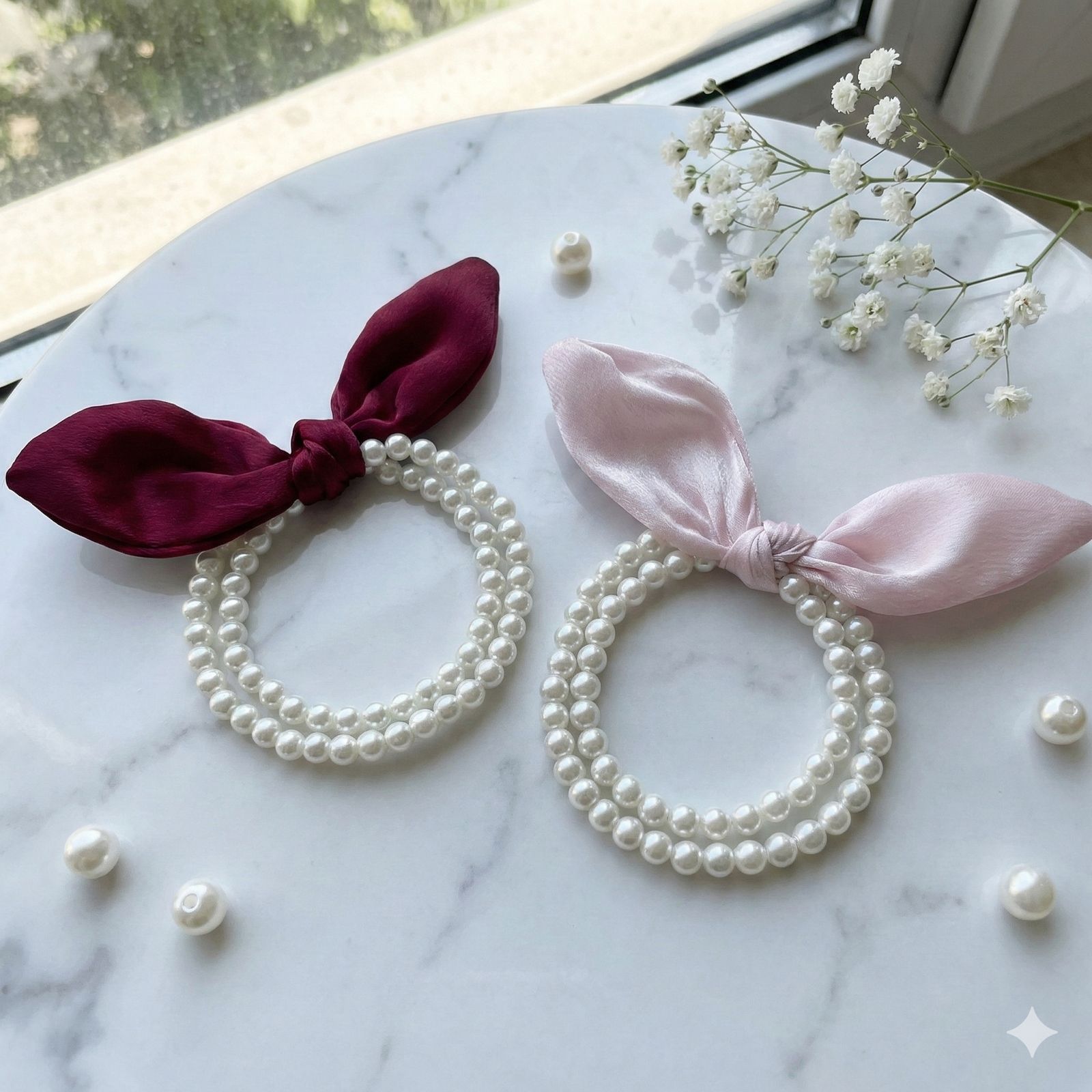 Silk Bow Pearl Hairtie