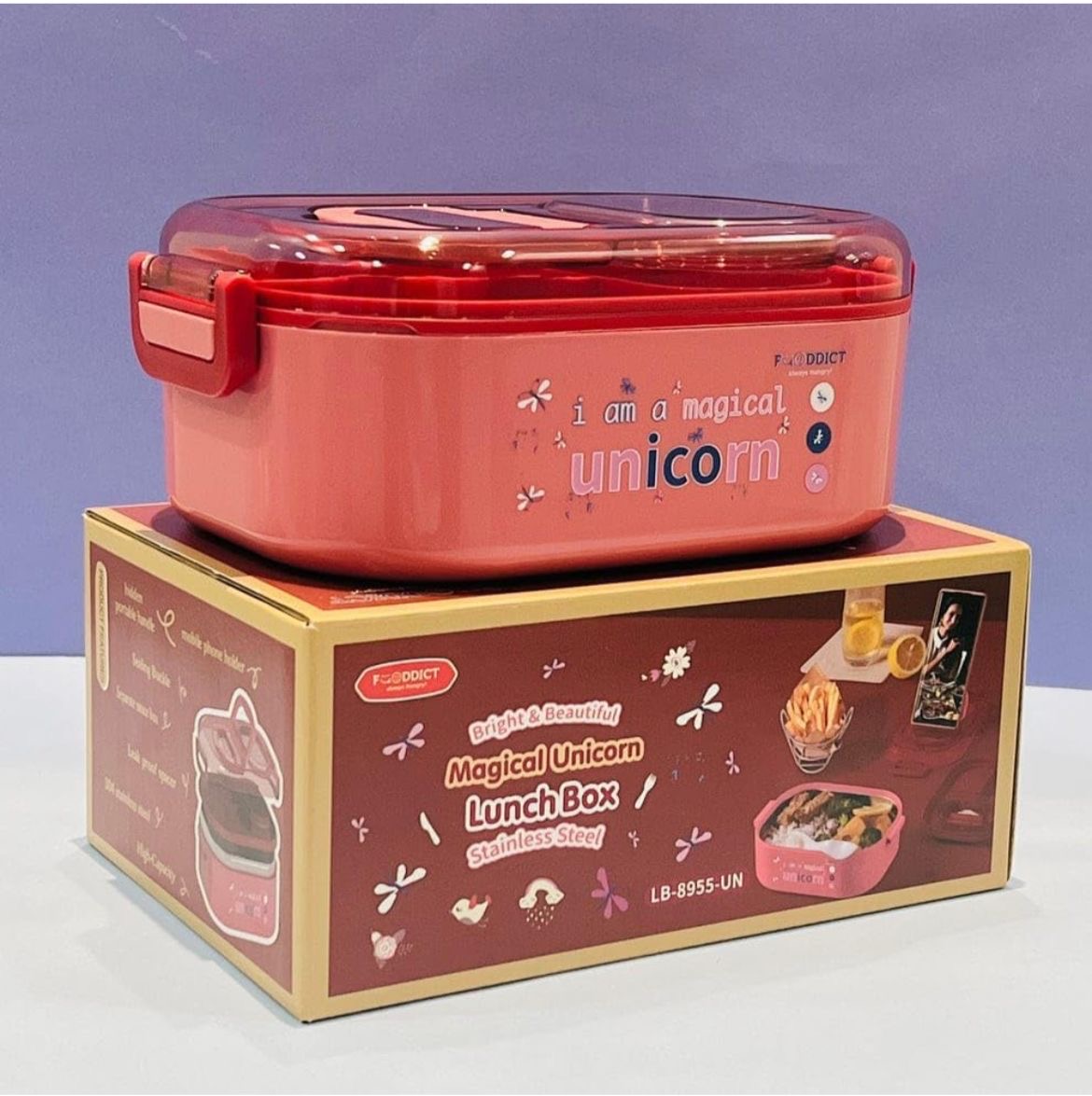Unicorn Bento Stainless Steel Lunch Box (Red)